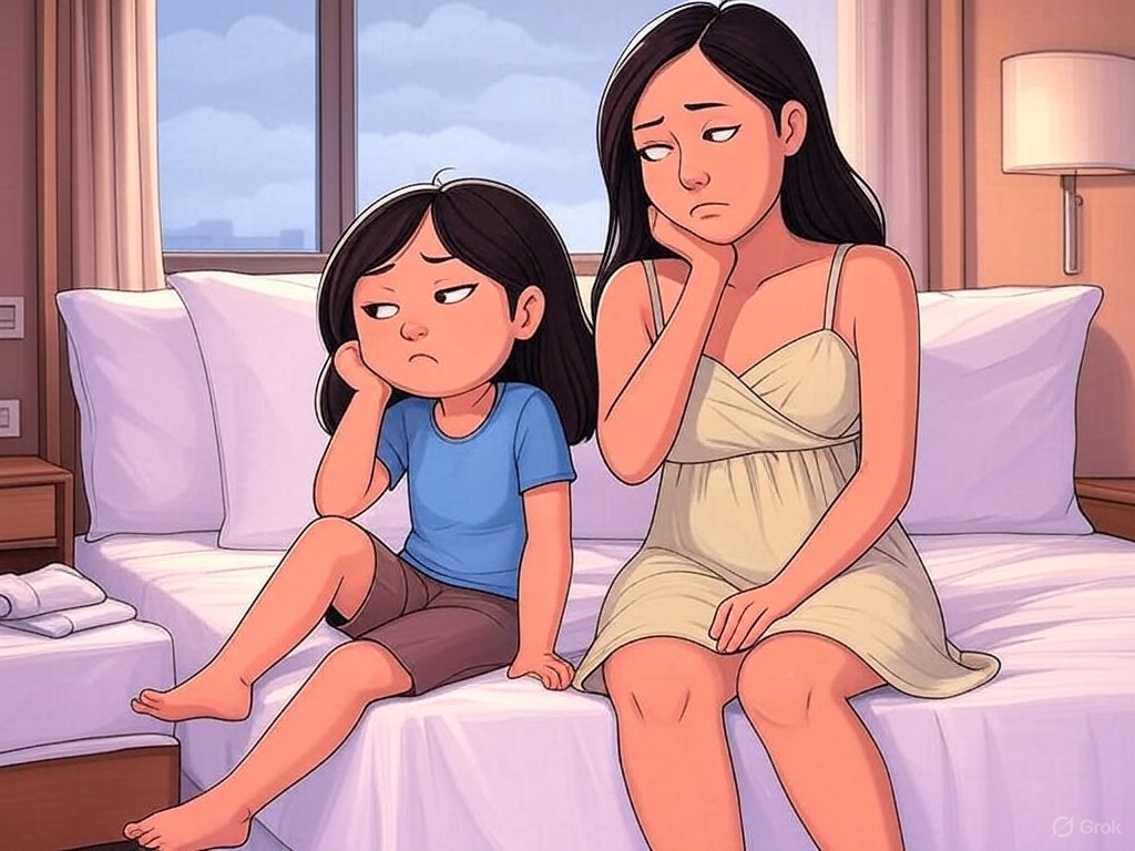 My daughter also only had crocs as footwear. She adores them, and refuses to wear anything else. Although I share her opinion on them, they are full of holes! Therefore walking to the market to buy some warmer clothes was out of the question. We spent the next two hours inside the apartment, wondering around aimlessly. We nipped briefly to the hotel bar, had a drink and then returned to our room.